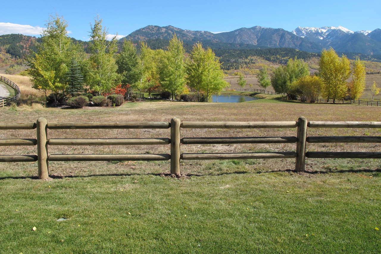 Lodge pole pine and pipe rail fences are ideal for surrounding expansive property while still leaving room for smaller animals to get in and out.