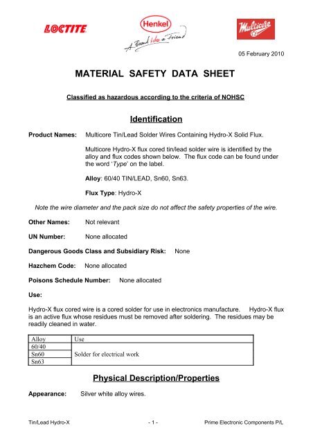 The fluxes in henkel s unique solder wire products available in both solid and cored versions have been formulated to accommodate a wide variety of different alloys and diameters. Nc601 sn63pb37 date revised. Nc601 no clean solder wire manufacturer 24 hr. K100ld lead free silver free alloy bar solder sds english gb k100ld lead free silver alloy bar solder 5 12 2017 125 5 kb.